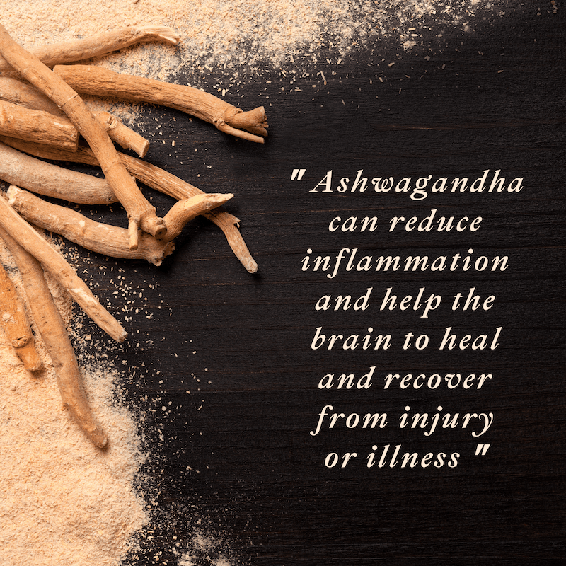 Ashwagandha can regulate chemical signals in the stress pathway in the brain and reduce cortisol levels which is a compound released by the adrenal glands in response to stress. Therefore, Ashwagandha is a useful aid to many people in reducing stress and anxiety. It can also reduce inflammation and help the brain to heal and recover from injury or illness. This can decrease the risk of diseases such as Parkinson’s and Huntington’s disease.